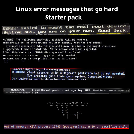 People would read the second message, type the yes prompt, break their system. But still claim that it was linux’s fault, and that the OS doesn’t work.