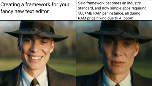 The upside to the situation is that electron has been a more successful cross platform development framework then literally anything that came before it, from Xamarin to Java. And it’s entirely based on open source software, and open web standards.
