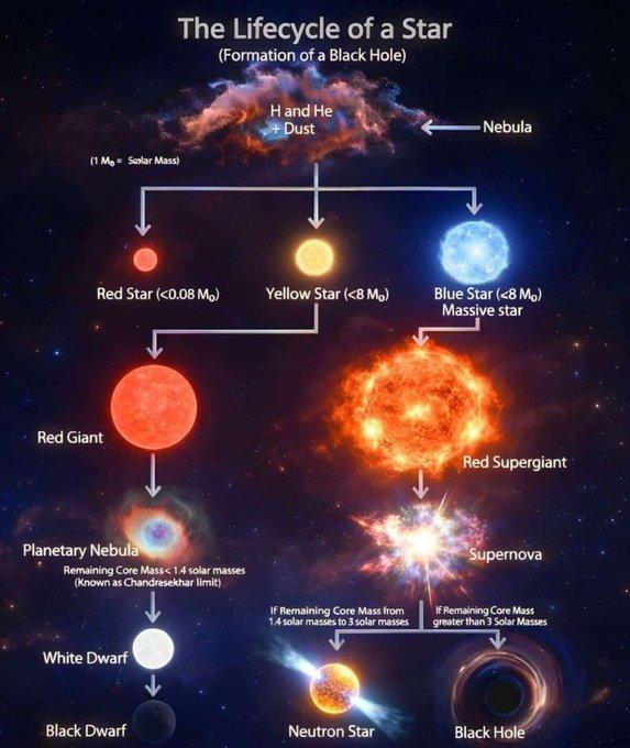 Ecco il ciclo di vita di una stella, dalla nascita fino al buco nero