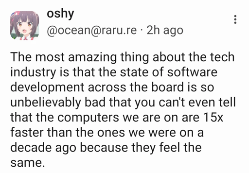What’s even more orders of magnitude slower and infinitely more bloated is software. Which is the point of the post.