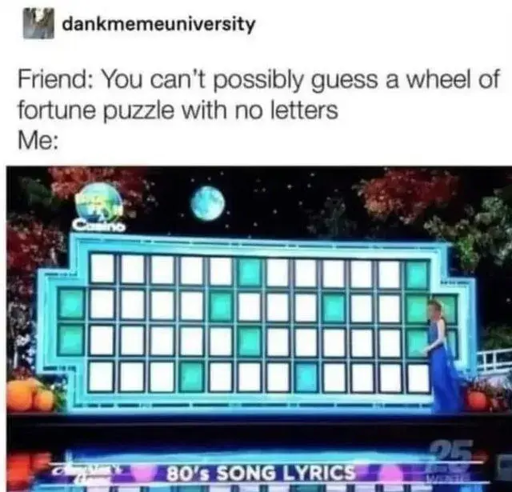 I got it even without seeing the head or the 80s song hint.