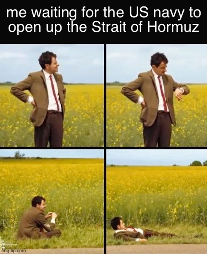 Iran military defeated? In the Strait of Hormuz? At this stage of the war? May I see it?