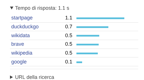 1·10 days ago@DigiDavidex @internet searxng aspetta i risultati di tutti i motori di ricerca attivati, fra quelli di default startpage e duckduckgo sono i più lenti (vedi i tempi di risposta), se li disabiliti avrai risposte più veloci.
