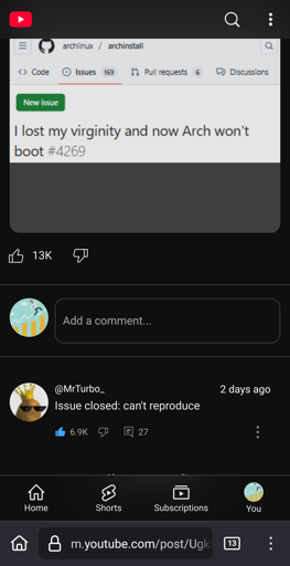 arrow-up11imageIssue closed: Can't reproducelemmy.worldshalva97@lemmy.world to linuxmemes@lemmy.world · 8 months agomessage-square0linkfedilink